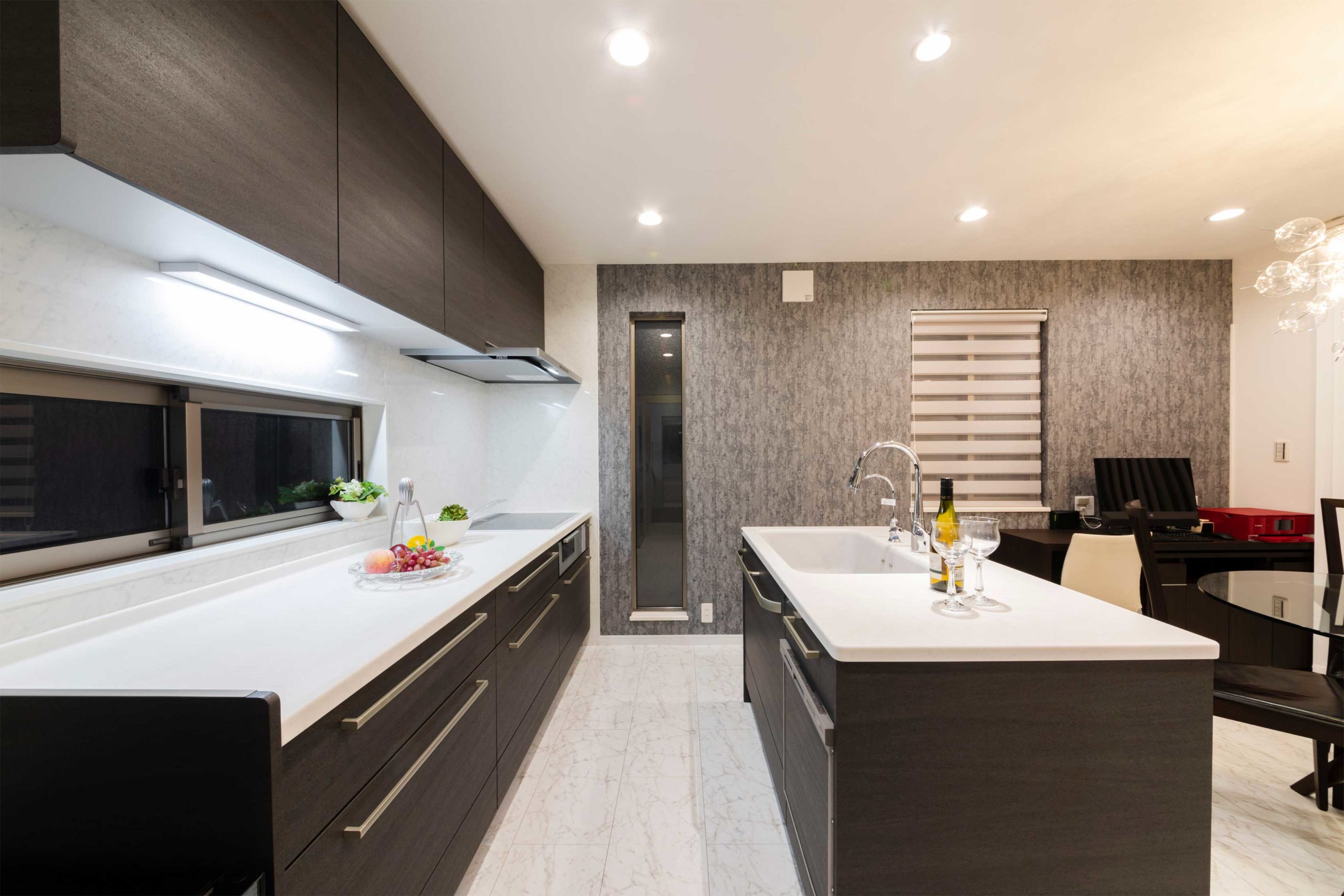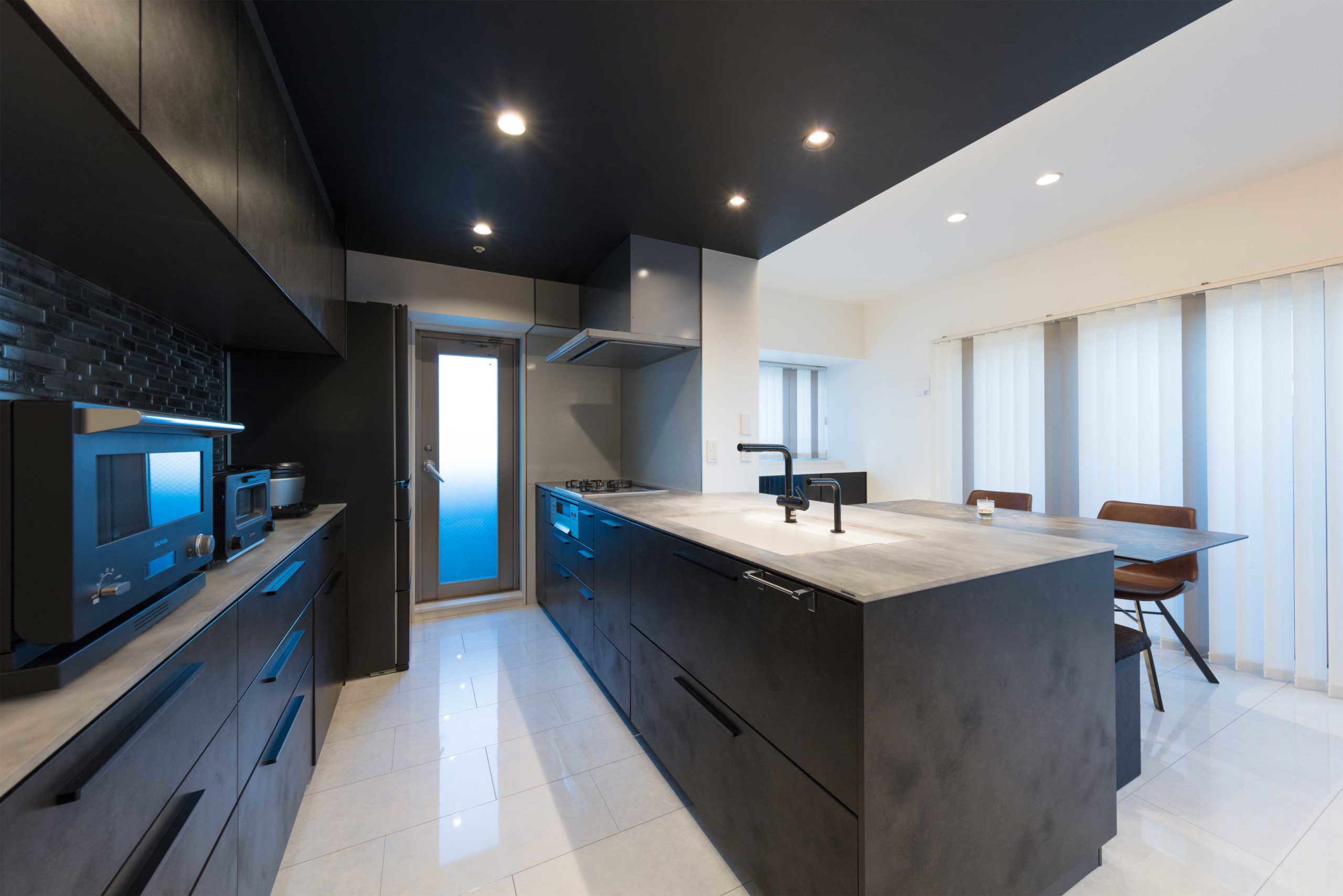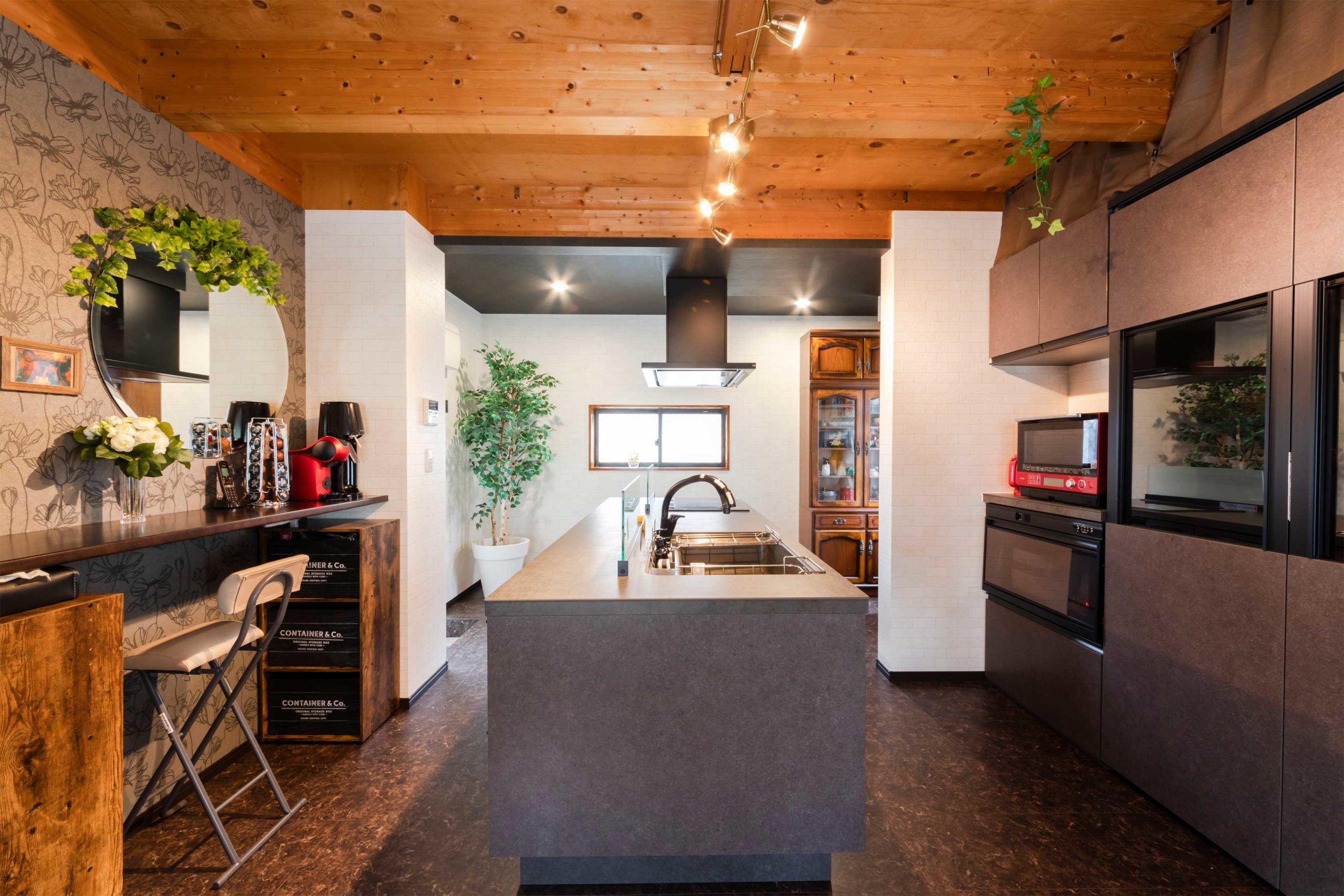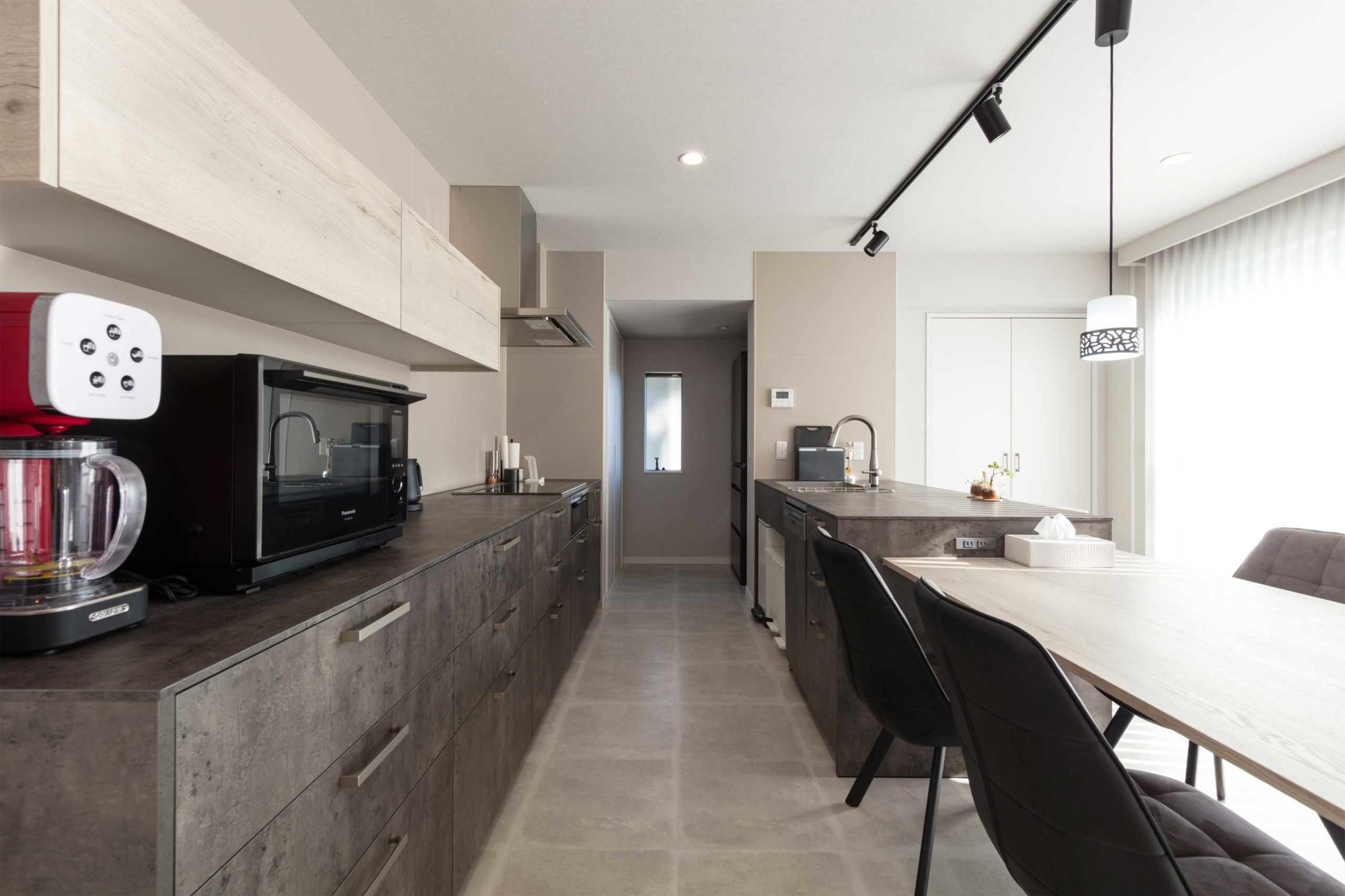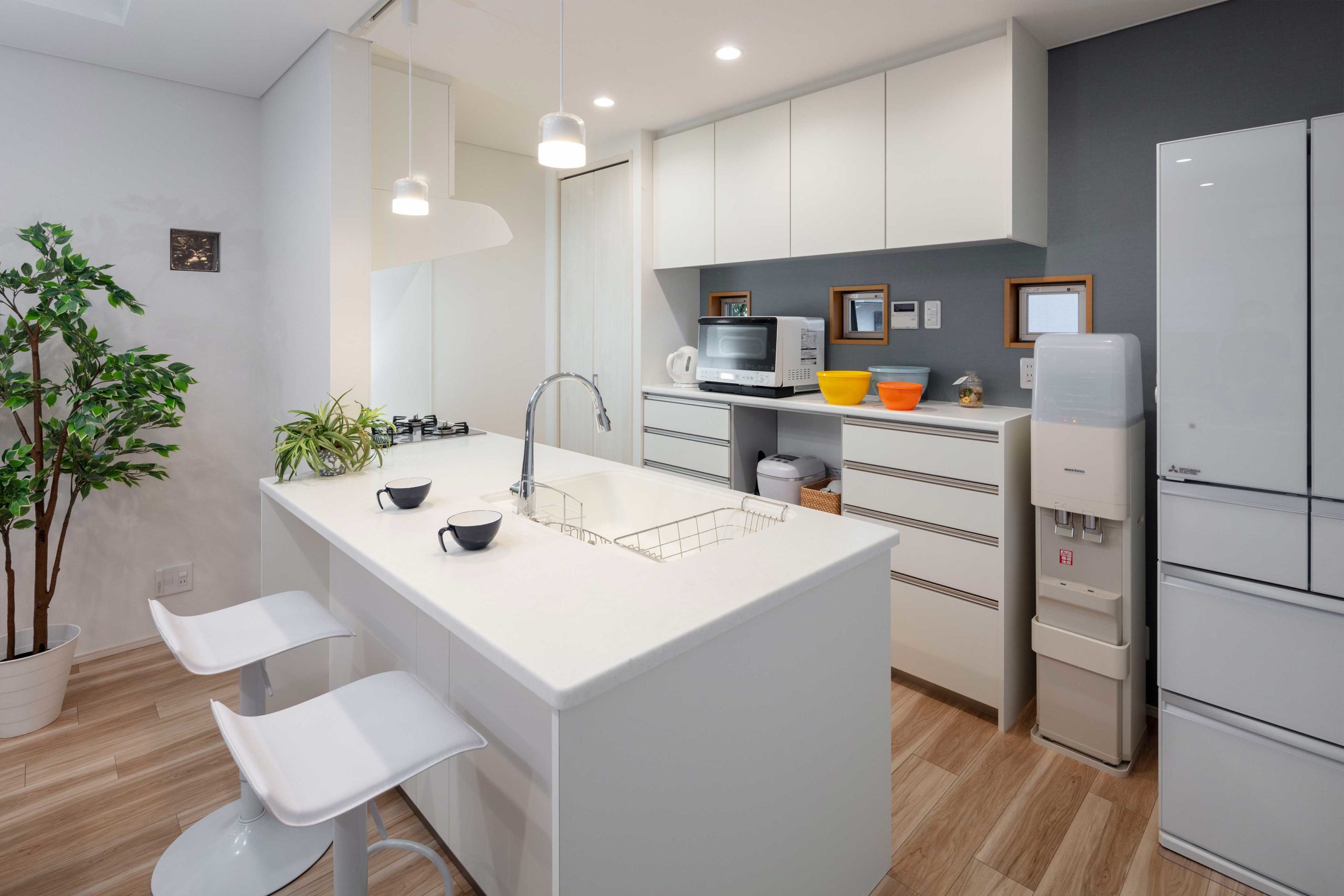 カウンターが半島(ペニンシュラ)のように突き出したキッチンで、設計の自由度が高いので個性的なキッチンを作ることができます。一般的にはダイニングキッチンなどオープンキッチンのように使い、LDに接していることが多いので、リビングからの視線を考慮する事が大切です。