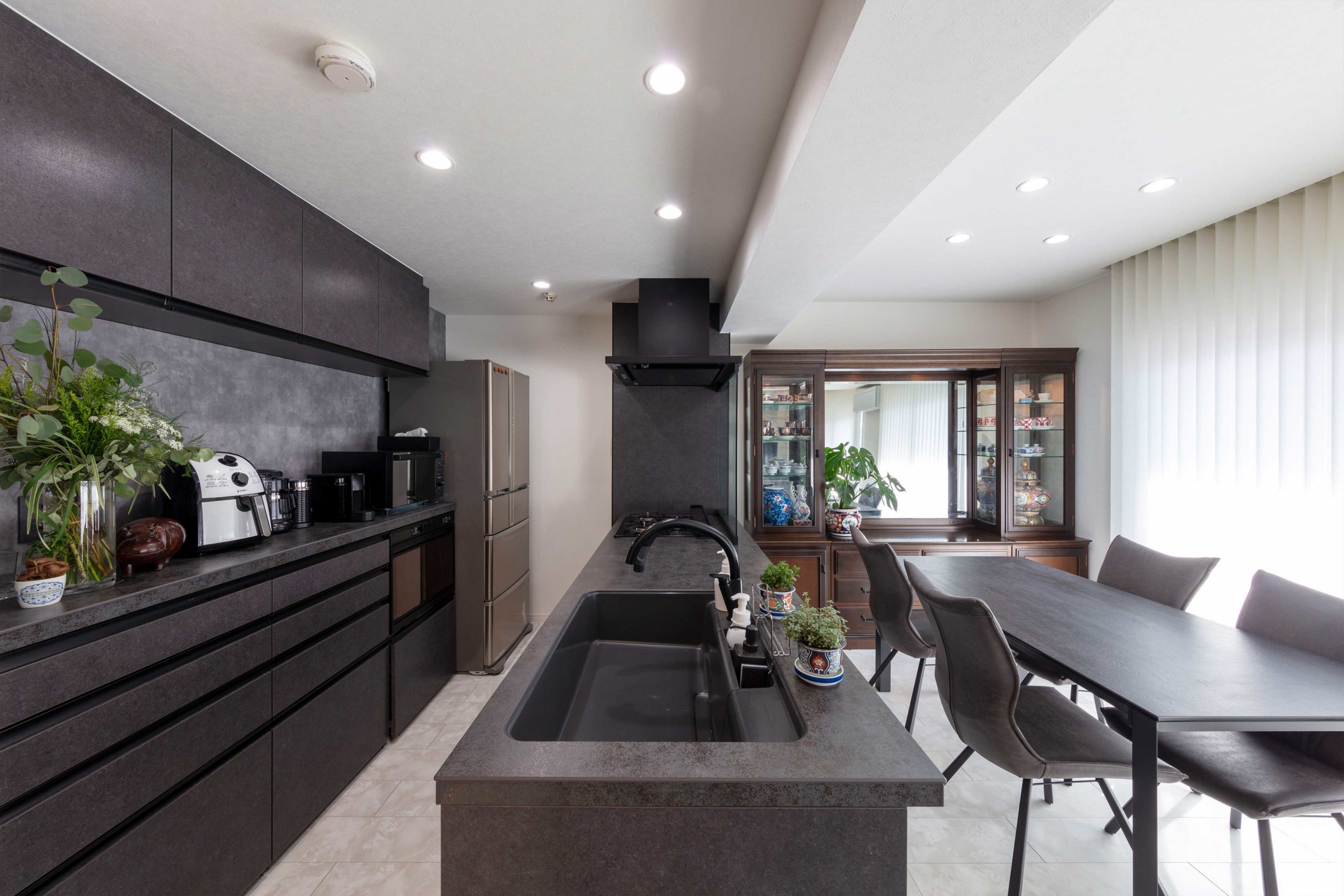 コーナー部分があるのが特徴のキッチンです。からだの動きを90度変えるだけなので、作業動線が短く効率よく作業できます。コーナーを活かすことでカウンターや収納スペースを広く使えますが、上手に使わないとデッドスペースになってしまいます。