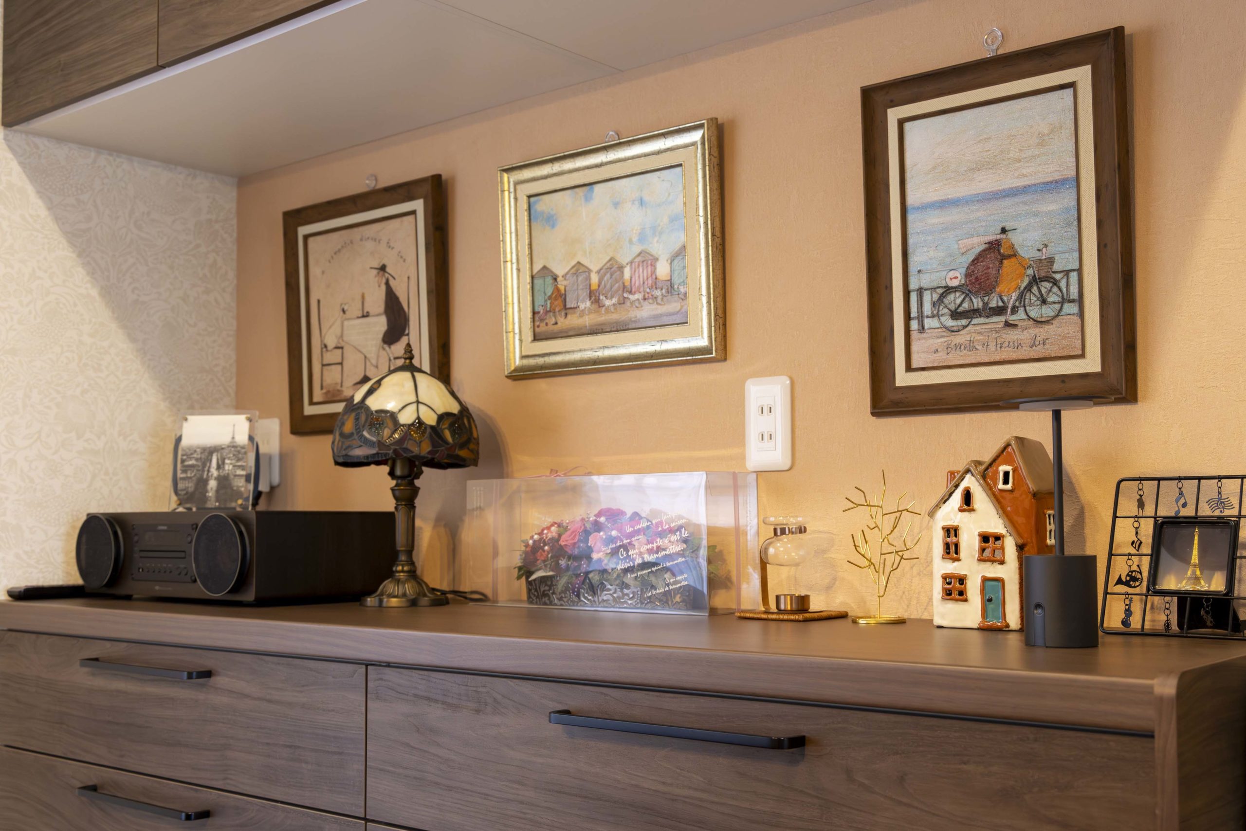 奥様の趣味であるガラスのコレクションや絵がより映えるよう、