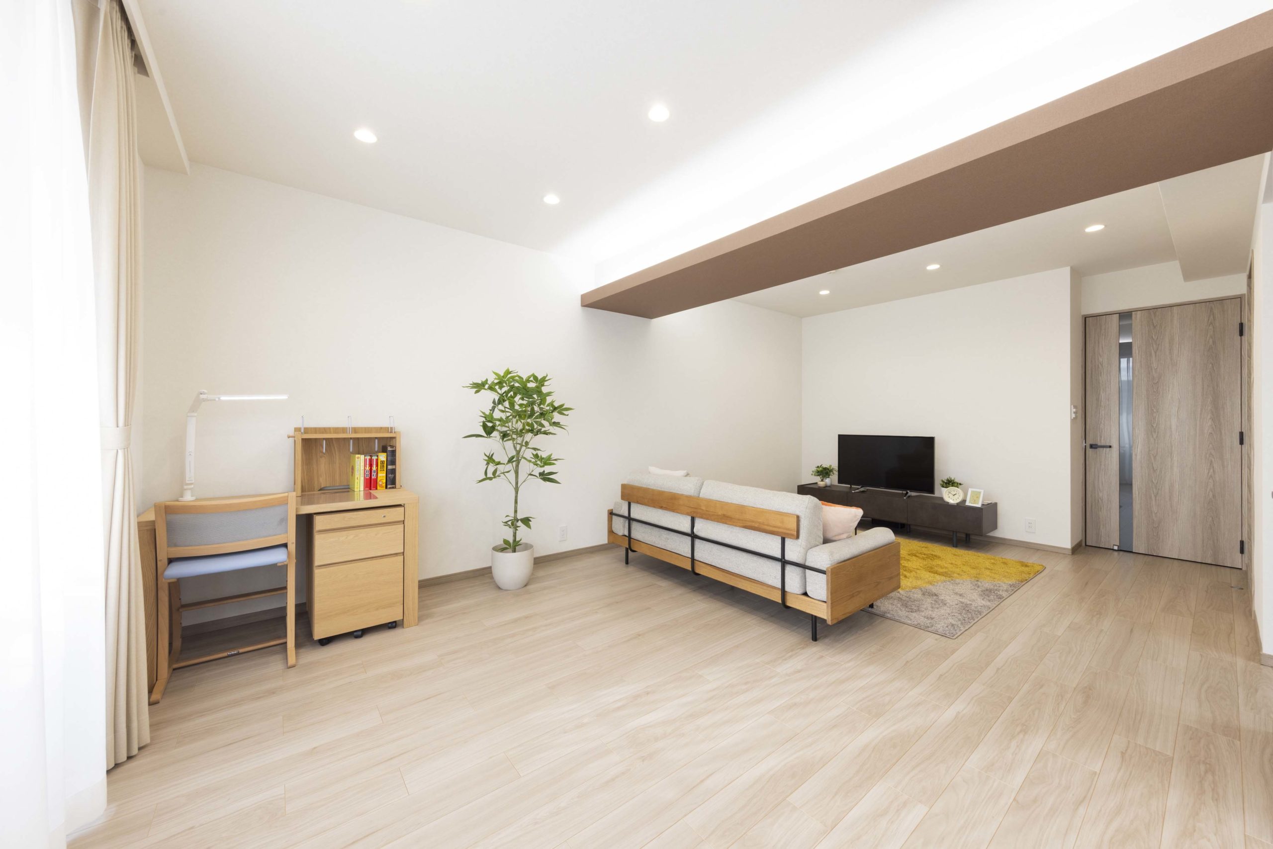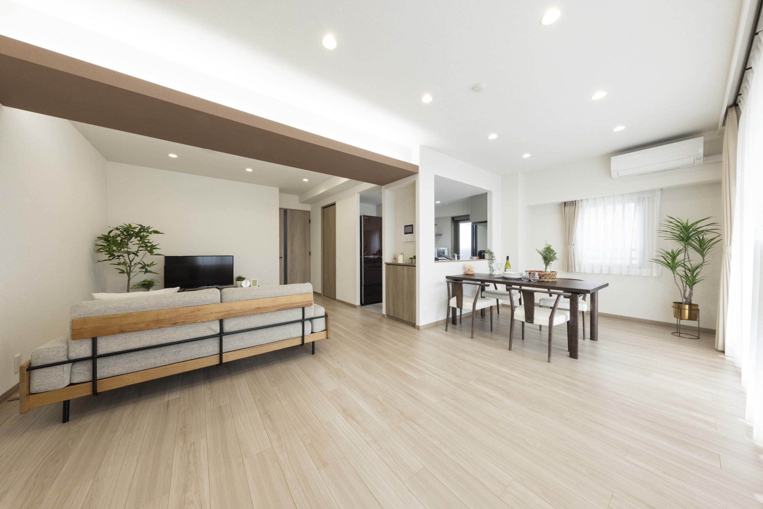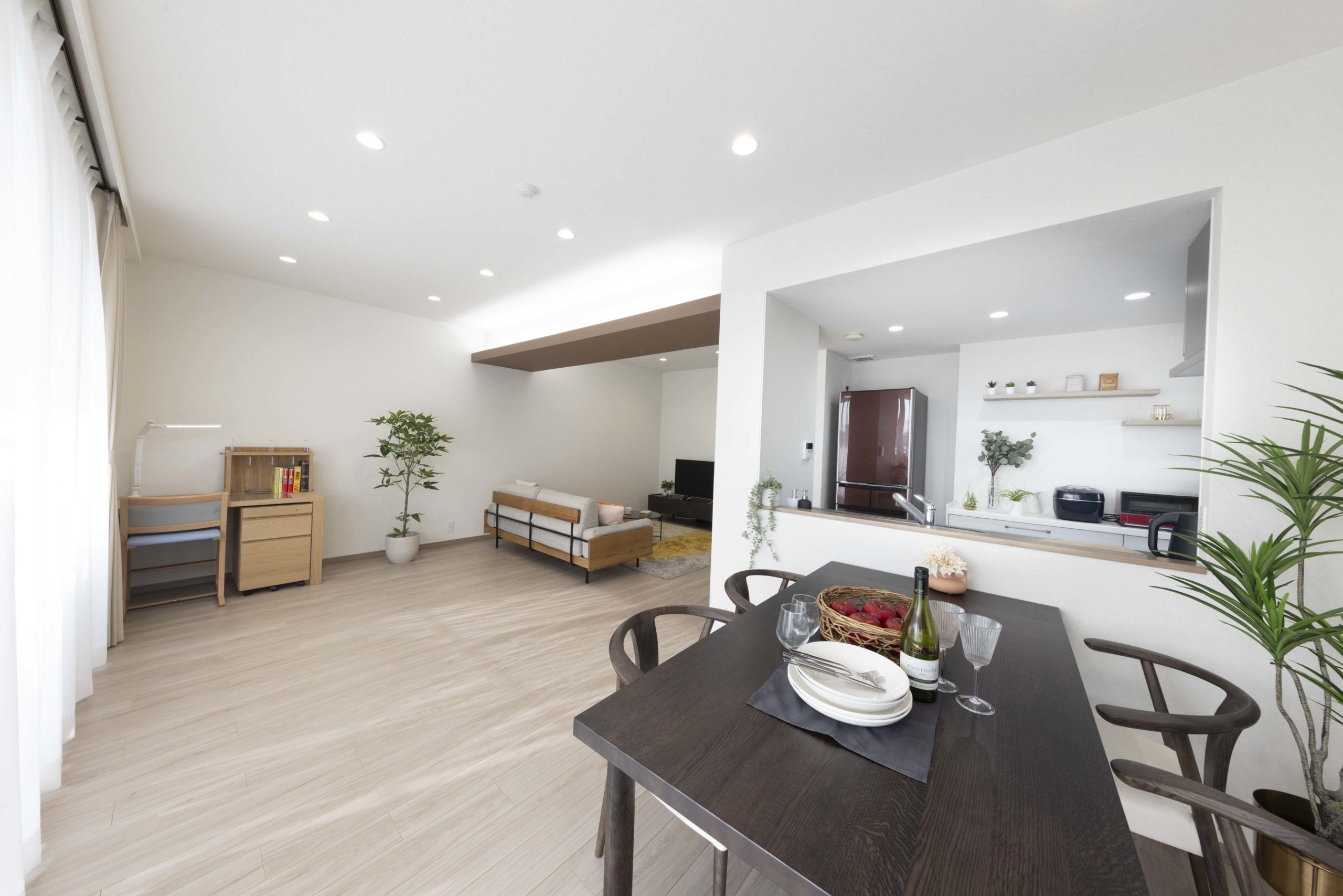 和室と廊下を取り込んだことで開放感あふれるLDKが実現。