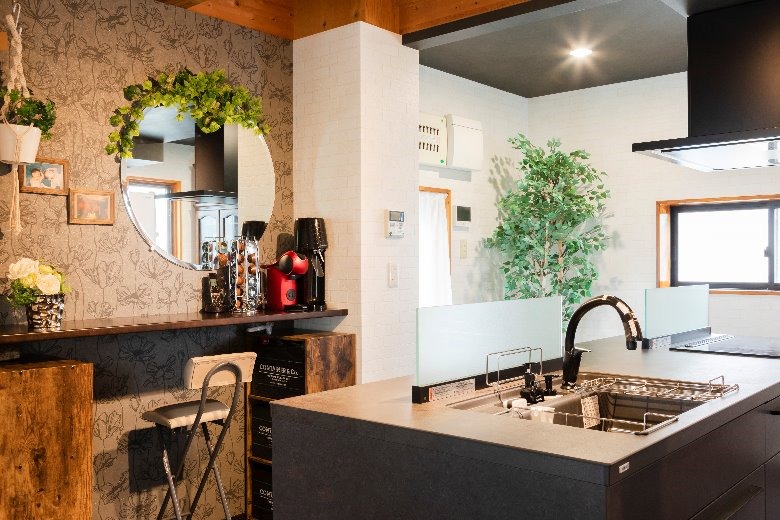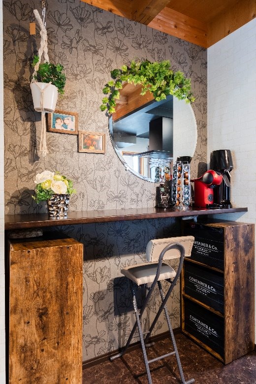 勝手口横に設置したカウンターではコーヒータイムや思い出の写真を飾る場所としてのご利用と、憧れだったのキッチンを眺める空間としてもご利用いただけるようにいたしました。