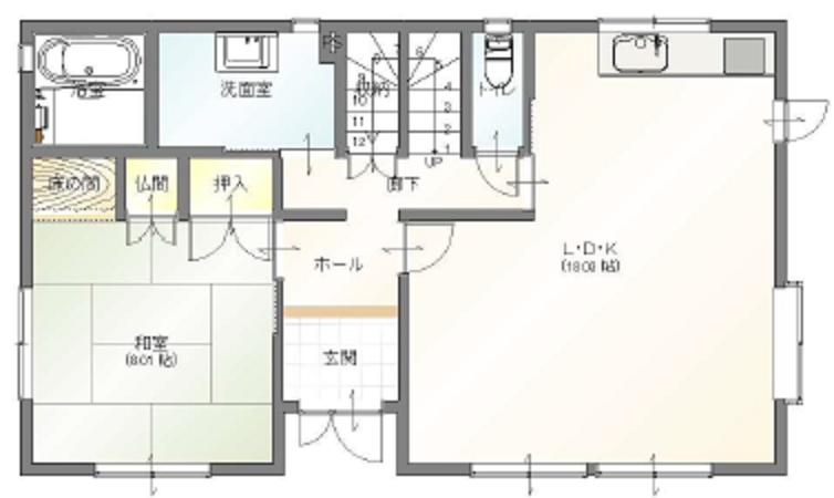 趣味部屋, リビング, ダイニング, キッチン, トイレ, 洗面室, 浴室, 収納, 玄関