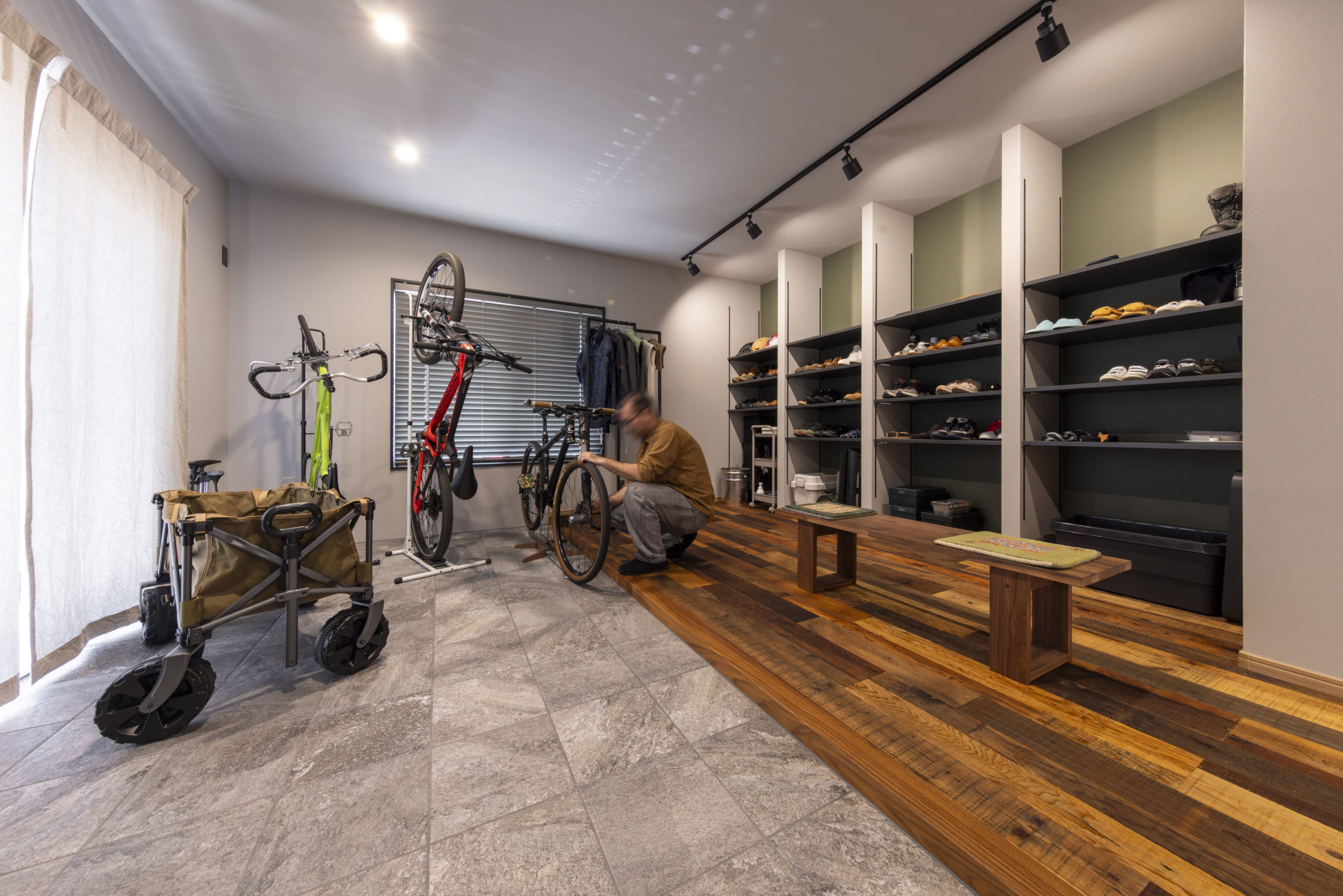 できるスペースを設置しました。自宅内でも自転車の整備ができ、