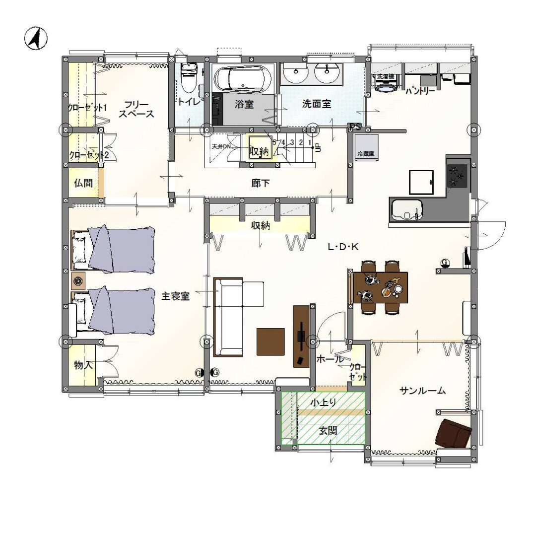 ご要望として、段差をなくしてフルフラットな間取りにすること、断熱性を上げること、水まわりの最適化の3点がありました。