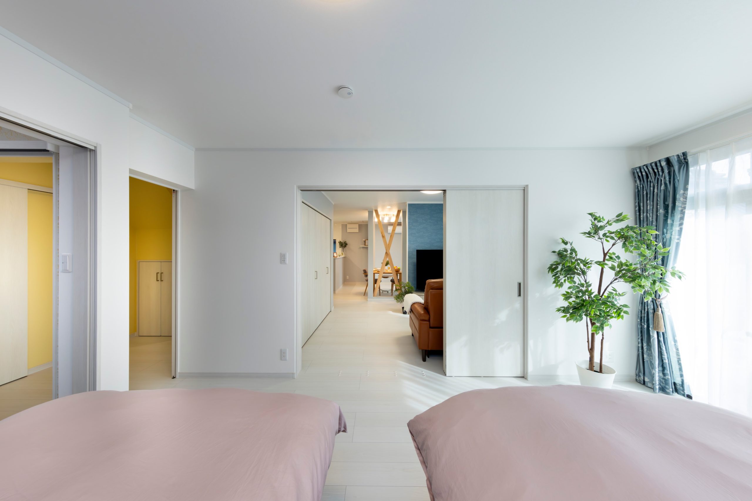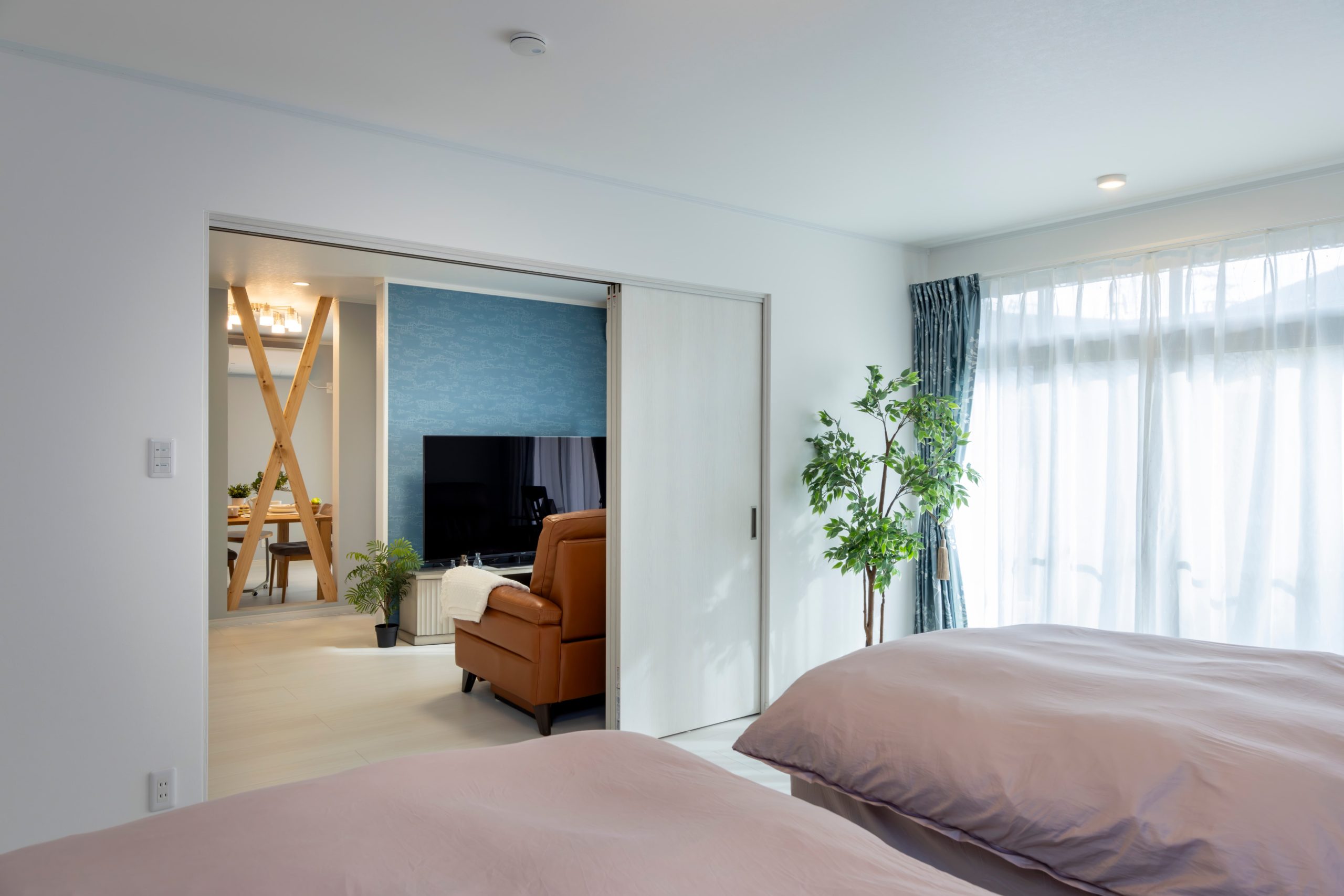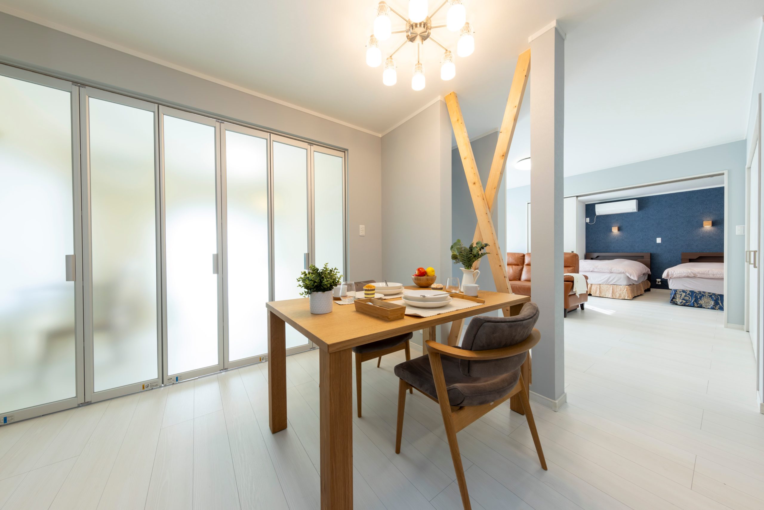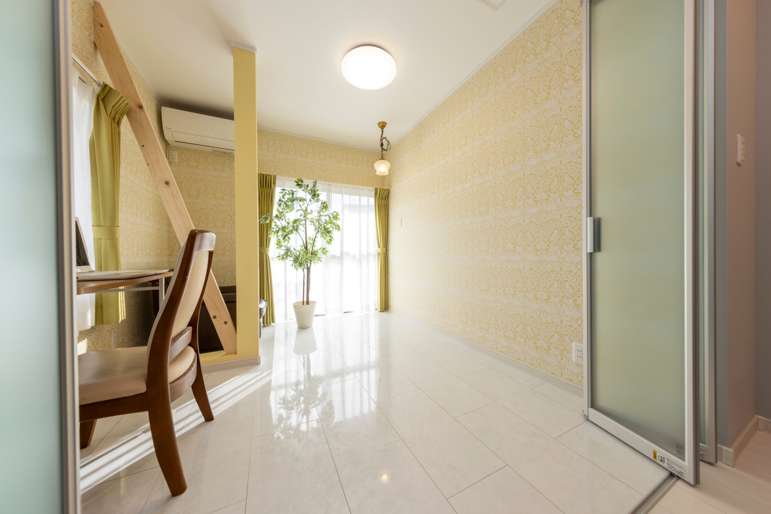 リフォーム前は部屋と部屋の間に段差があり、掘りごたつもありました。段差のストレスをなくすために和室から洋室に変更して、間仕切りも吊りタイプに変更しました。