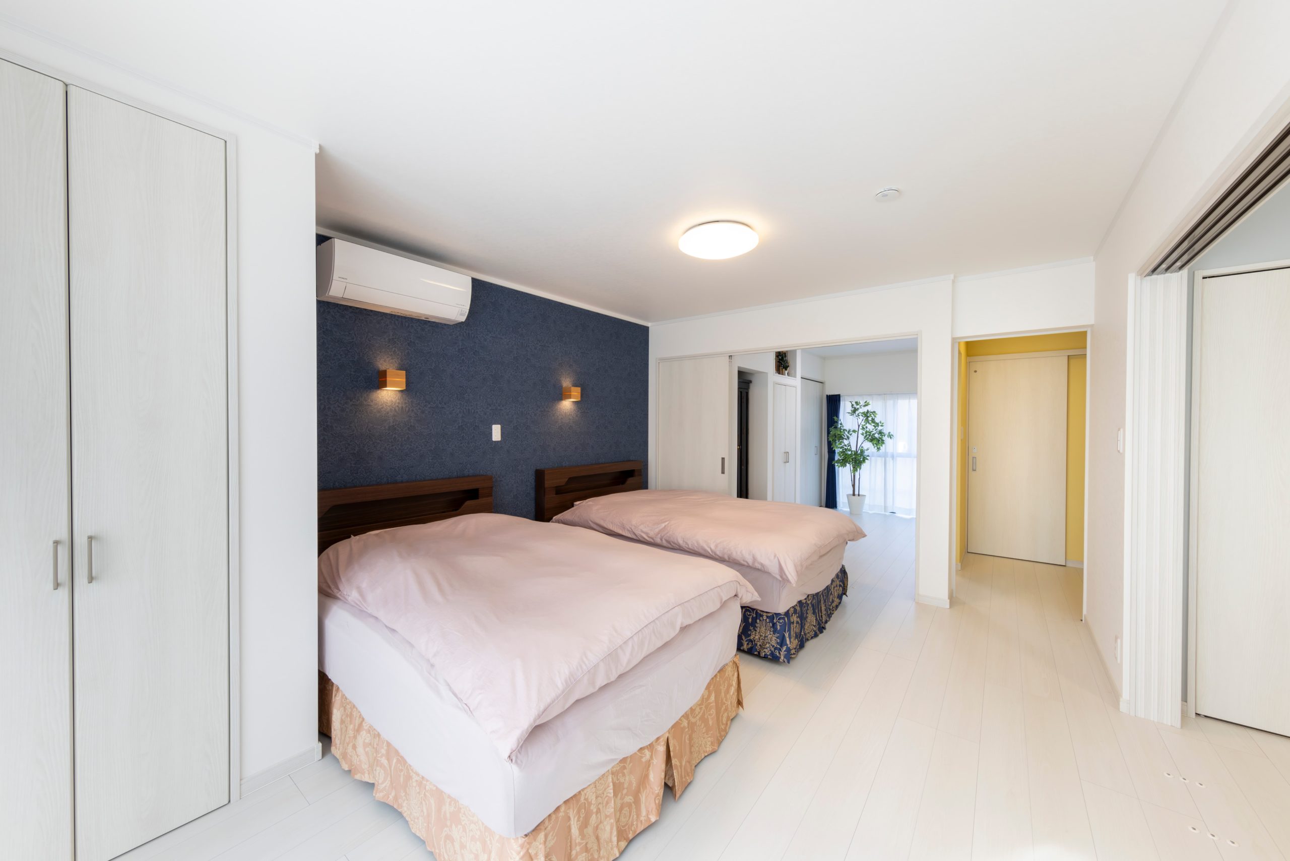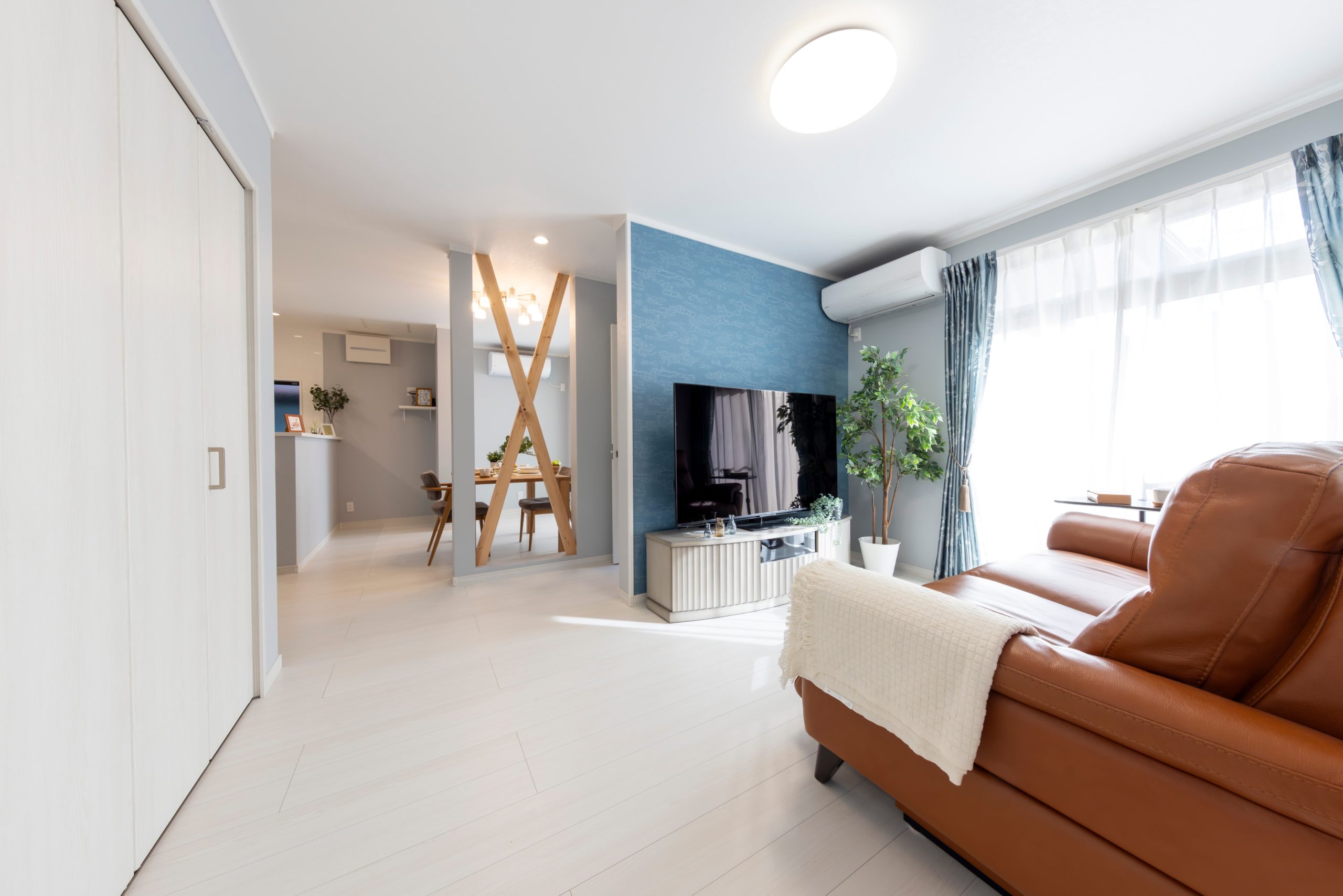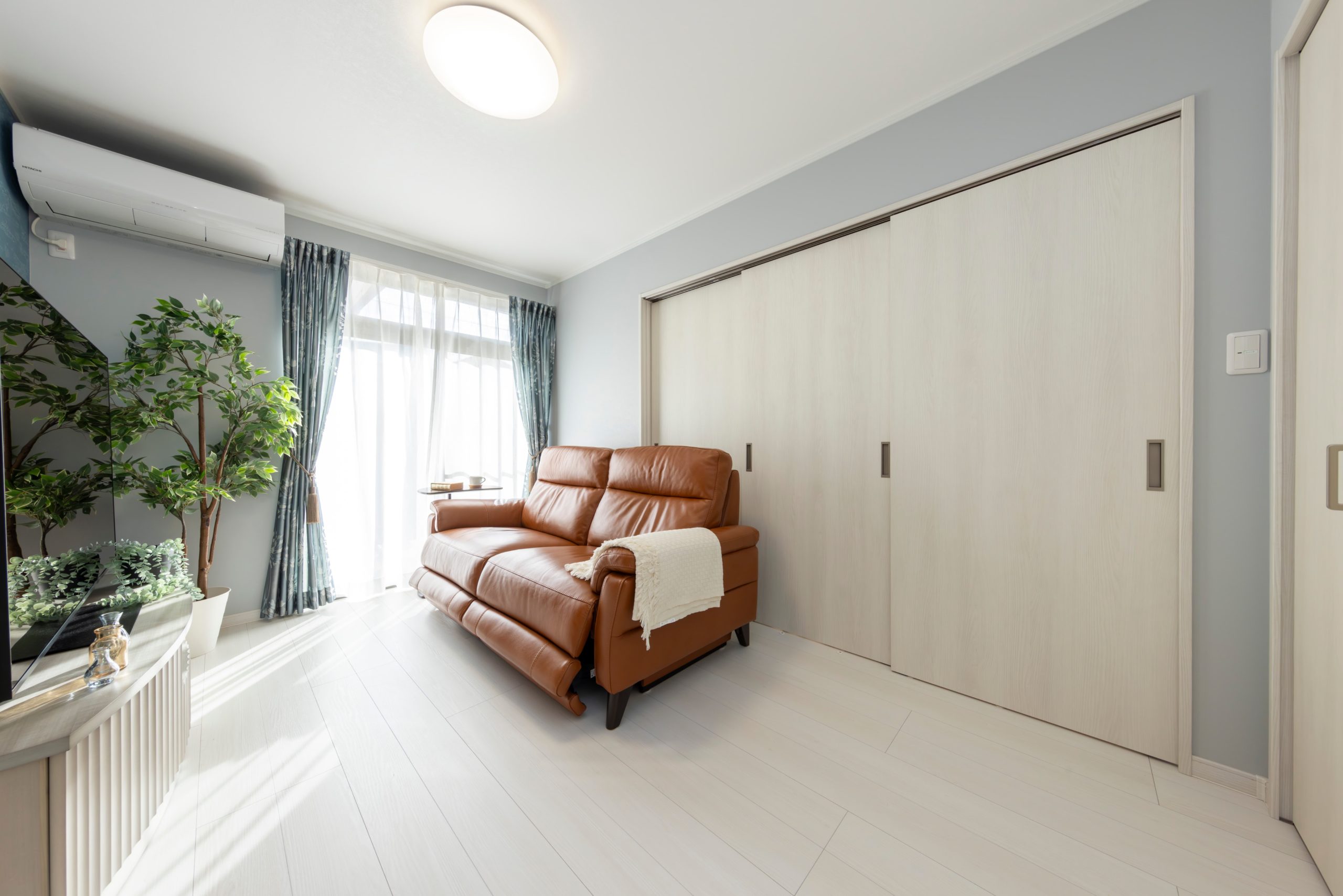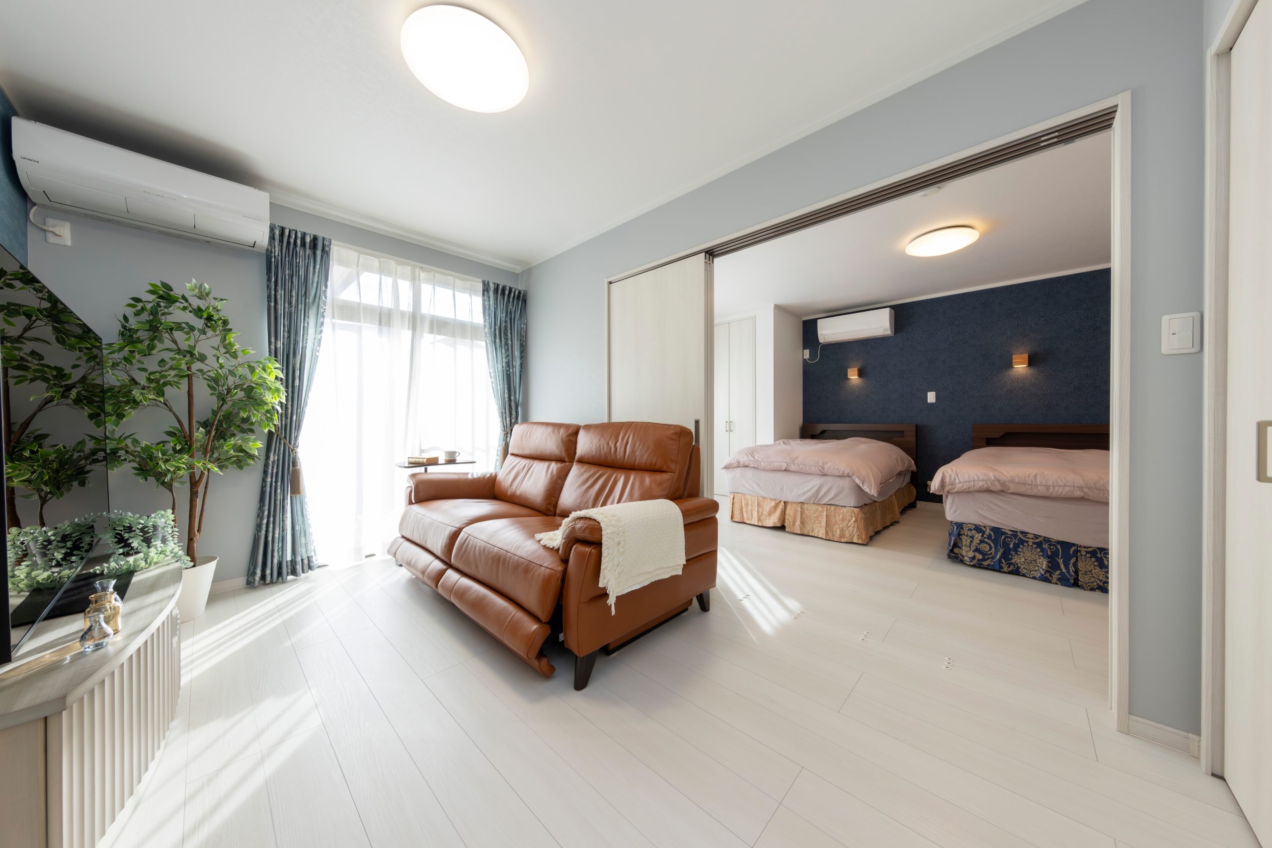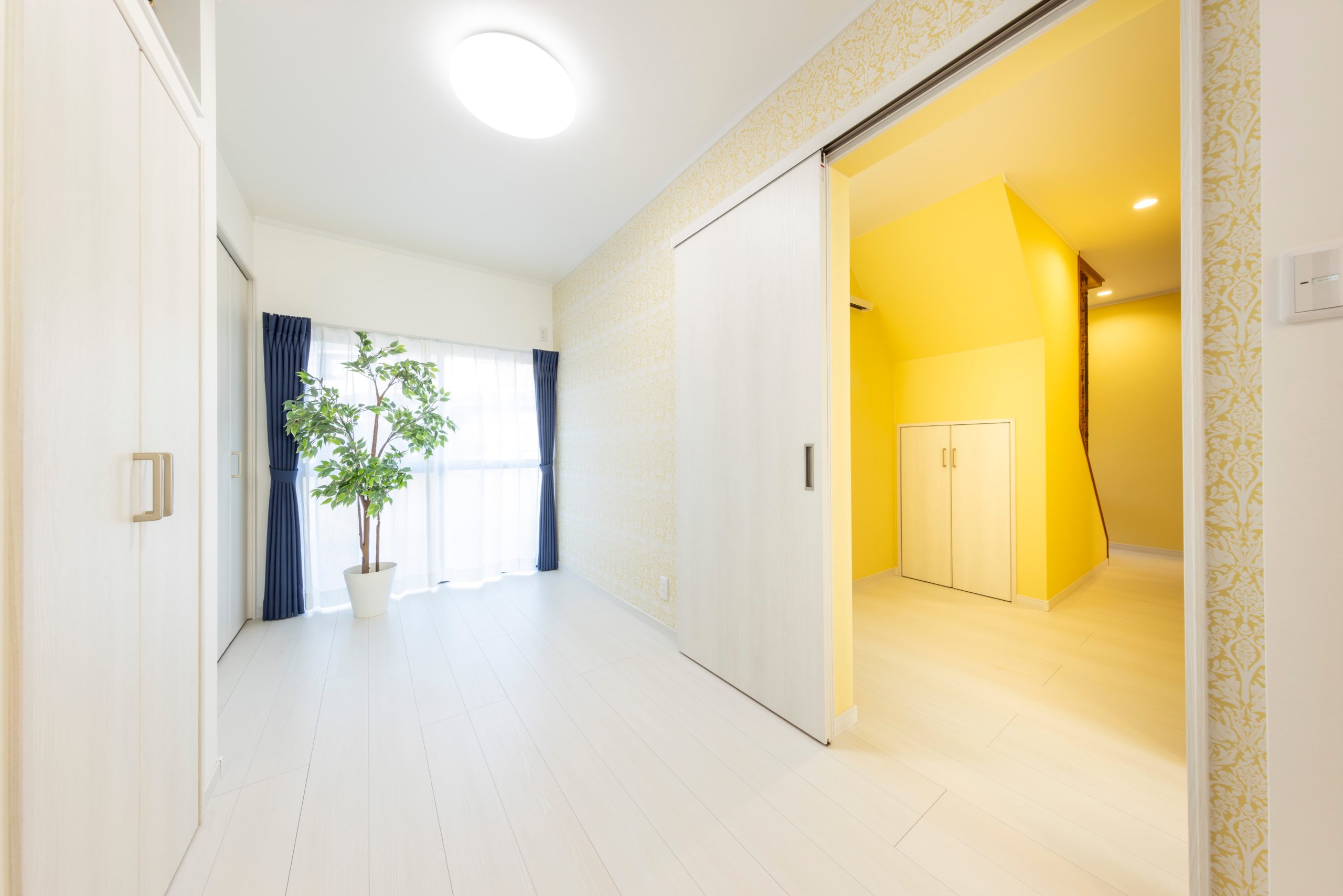 リフォーム前は部屋と部屋の間に段差があり、掘りごたつもありました。段差のストレスをなくすために和室から洋室に変更して、間仕切りも吊りタイプに変更しました。