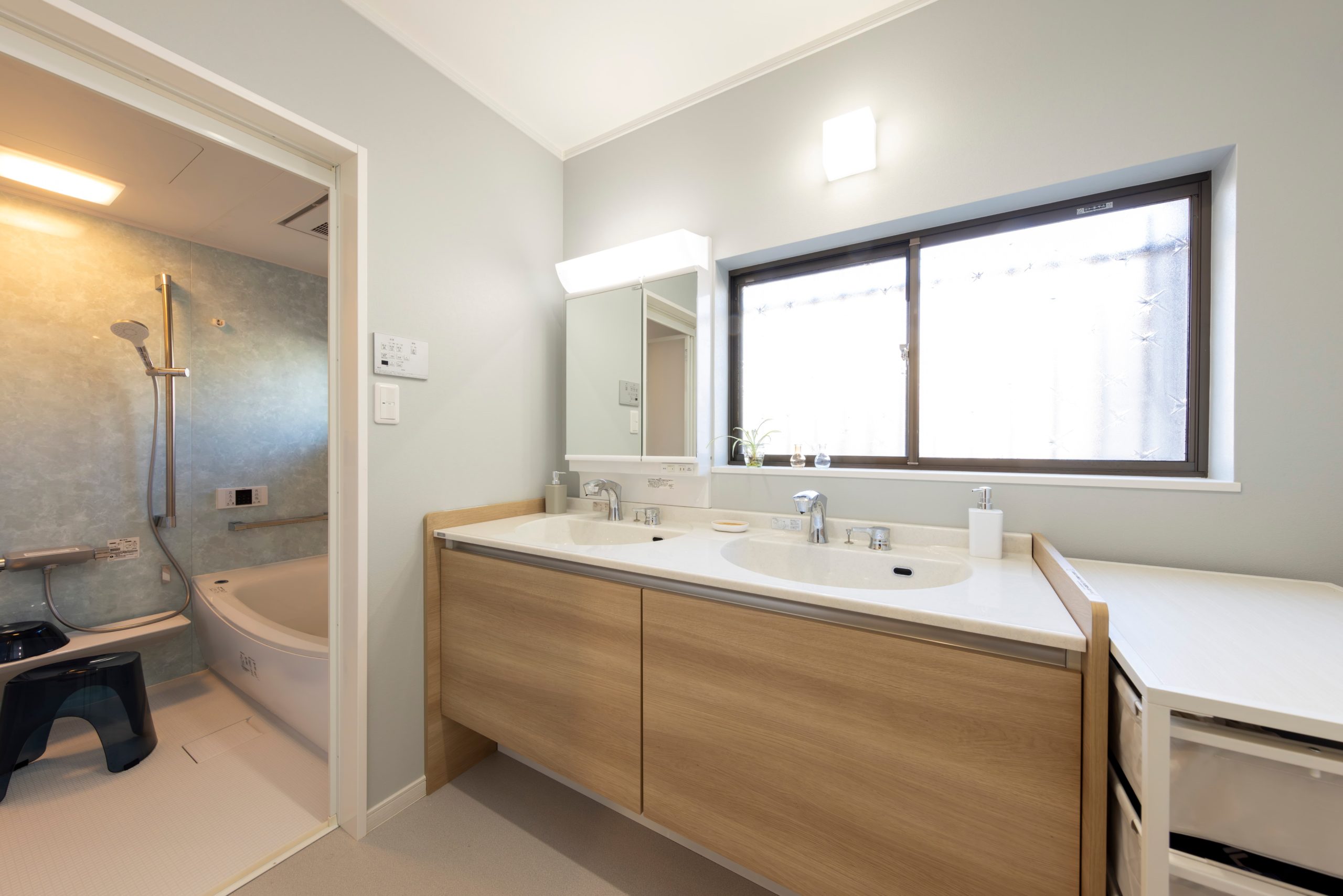 水まわりの設備はすべて新しくすることで使い勝手を向上させ、動線についてもキッチンをL型にすることとキッチン・パントリー・洗面室を回遊できるようにすることで家事効率を改善いたしました。