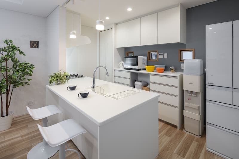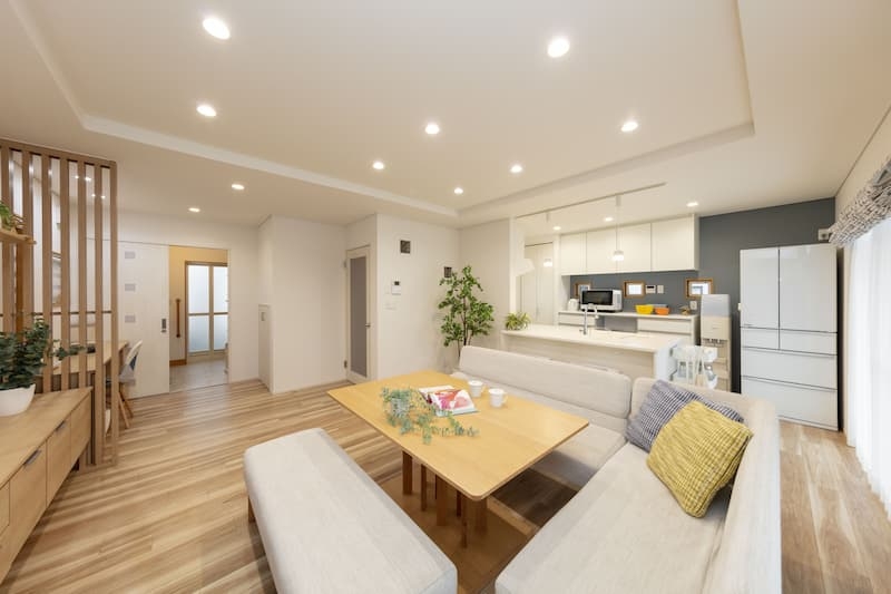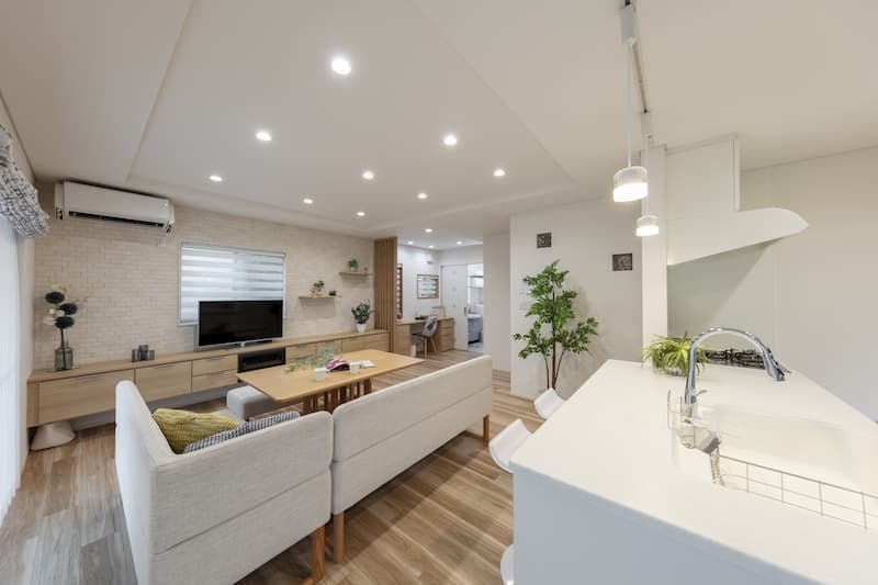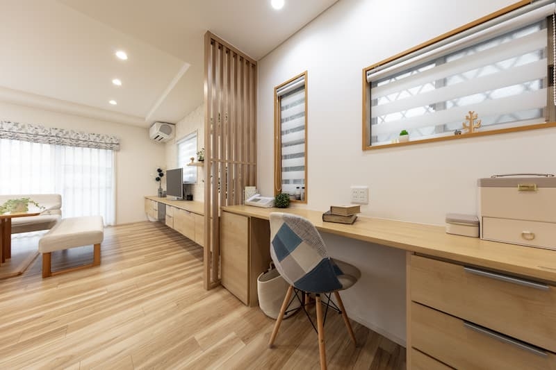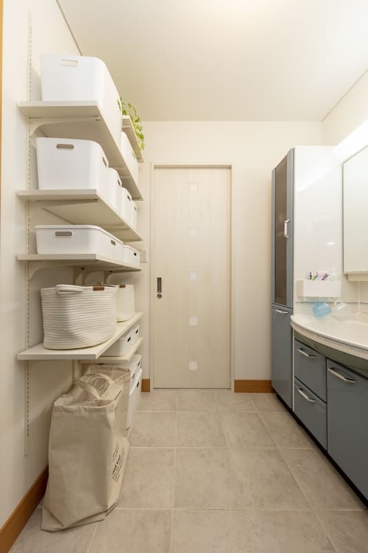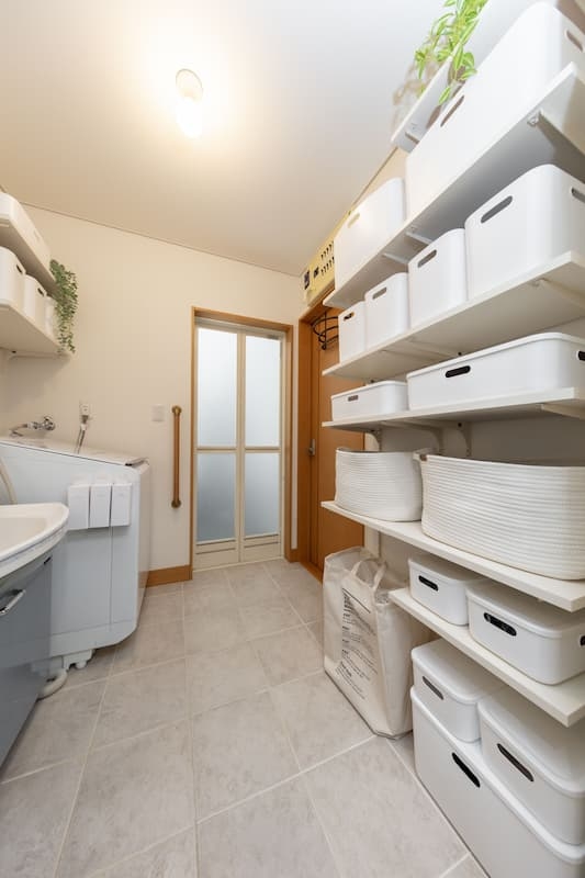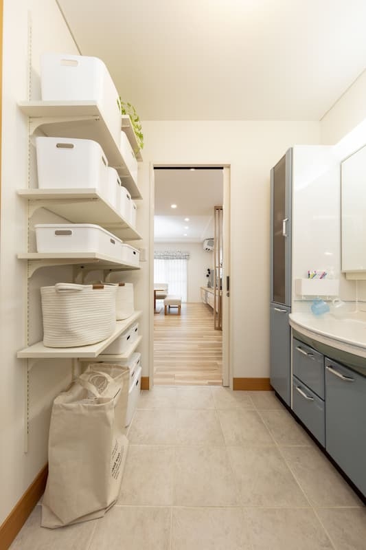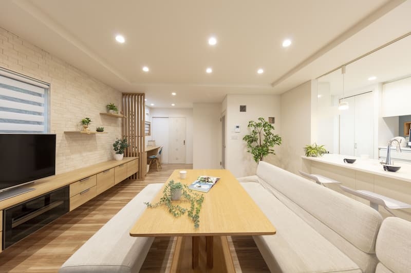 「広くてくつろげるリビングにしたい」とリフォームを考えていたN様。単純に面積を広くすることで解決しようと考えたものの、構造上壁を取り払えないことがわかり諦めかけていました。そうした中、参加されたトヨタホームリフォームの収納セミナー。収納を見直すことで面積が有効に使えるという提案があり、視点を収納にシフトして空間を広く感じさせる手法に切り替え理想のリフォームを目指しました。今まではLDK内に備え付けの収納はなく家具や収納ボックスが並び、統一感のない印象でした。これを解決するため、壁の幅いっぱいに壁面収納を設置。収書や学校のプリントなどの紙類が一か所にまとまり、モノの出し入れもラクになりました。キッチンパントリーの設置や階段下収納の見直しも行い、収納力が格段に上がったそうです。 また、ソファとダイニングテーブルを兼用できるリビングダイニングスタイルの提案もスッキリした空間づくりのポイントになっています。ほかにも、洗面室の壁をわずかに移動させたことでデスクコーナーも生まれ、テレワークの時には大活躍。収納・家具・インテリアのトータル提案により、機能的で居心地の良い空間に生まれ変わりました。