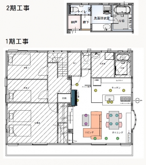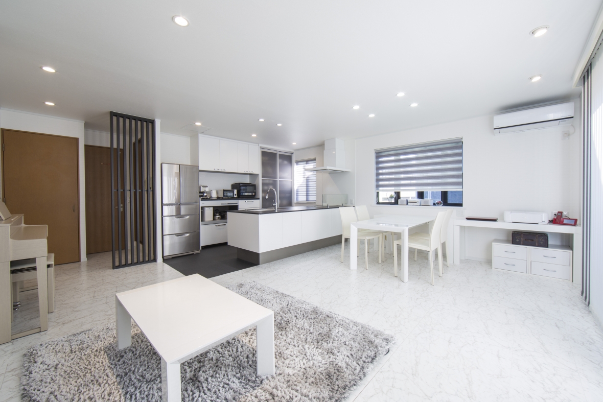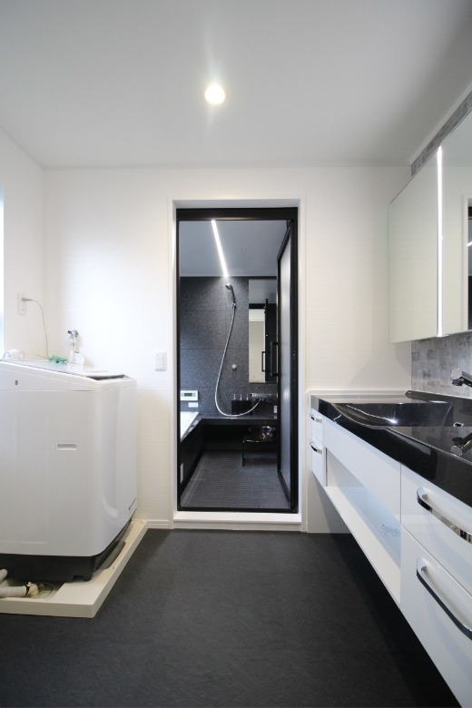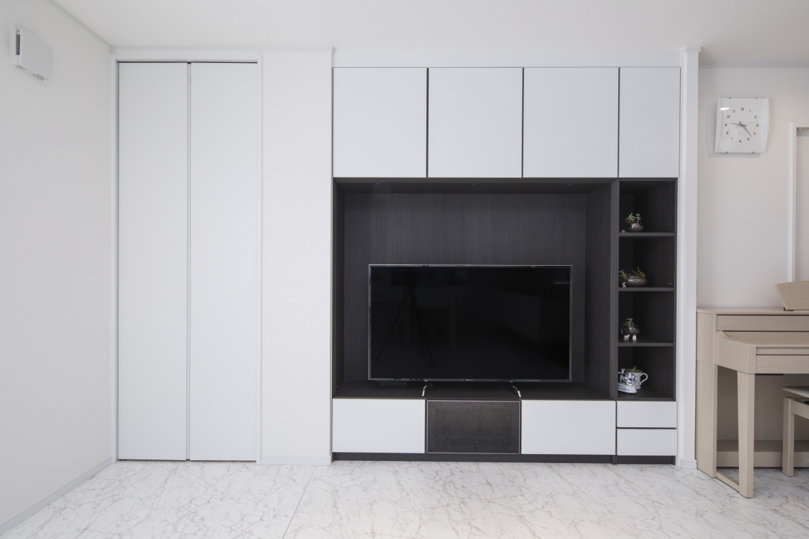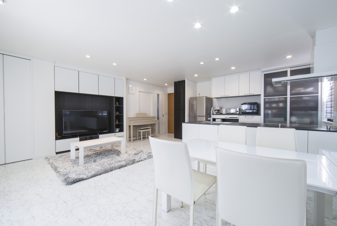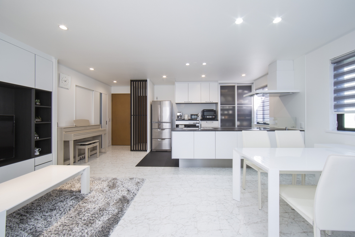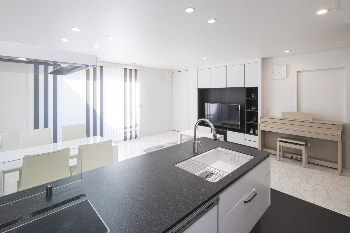 リフォームをご検討いただいた当初から、モノトーンに仕上げることと工事を2期に分けることを計画されていて、1期・2期の工事が終わったことで理想の住まいが完成となりました。1期工事でリビング、ダイニング、キッチンをリフォームいただき、手狭になったリビングをより広く感じれるようになり、ホワイト・ブラックのモノトーンのインテリアのベースがスタイリッシュに完成しました。2期工事では、家の間取りを見るのは大好きだというお子様の意見も取り入れた間取りで、トイレ、洗面室、浴室、物入れのリフォームされました。ご家族の共有スペースもモノトーンなスタイルで統一され、2期に渡る工事が終わったことで計画通りの仕上がりとなりました。お施主様には大変お喜びいただきましたが、一番うれしそうにされていたのは、想像していた間取りが現実のものとなったお子様でした。