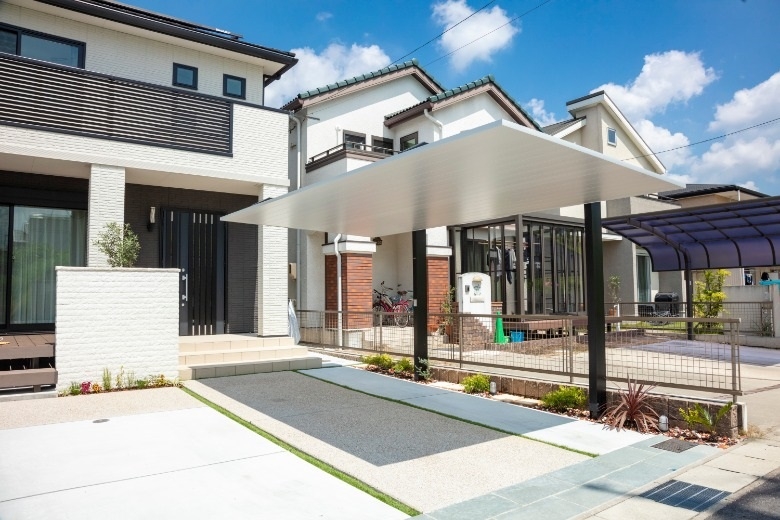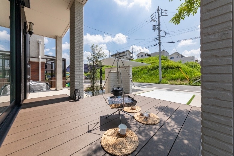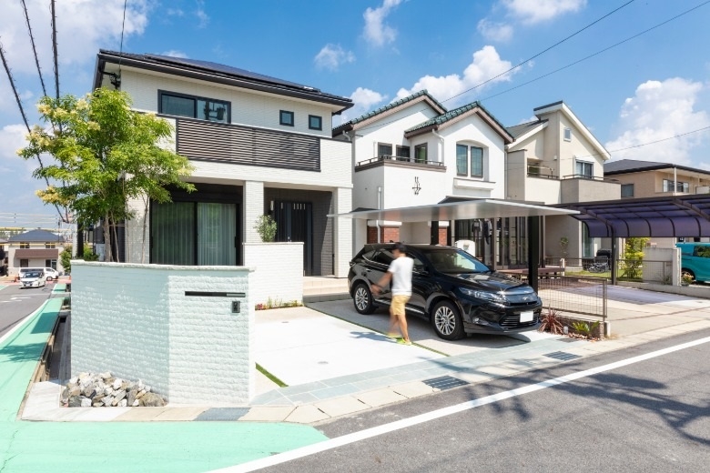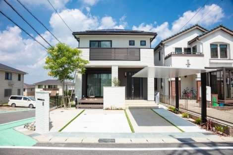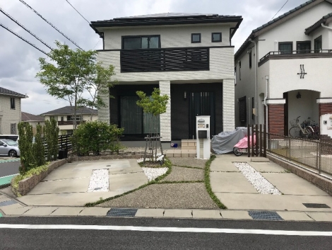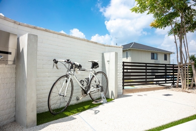 7年前の新築時、建物本体に時間や費用を掛けたため、後回しになっていた外構。満足のいく仕上がりになっておらず外構計画を再考しました。家のカラーであるホワイト・ブラックに合わせ、直線的でスタイリッシュな仕上がりに。ご主人様の趣味である自転車を置くスペースを設することで、趣味を楽しむことができるようになりました。ウッドデッキはリビングの延長上に配置し、掃き出し窓を開ければリビングが広がったように印象を与えます。また、天気のいい日にはバーベキューやお茶を楽しむこともできます。外構を整えたことで家が引き立ち、再び新築したかのように映えるように仕上がりました。