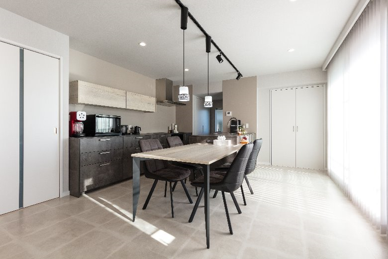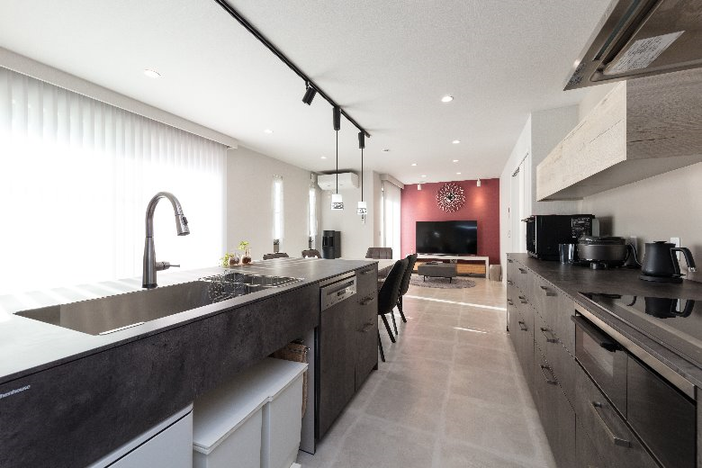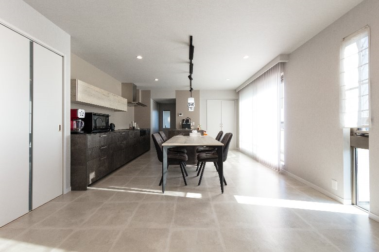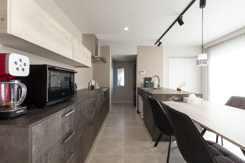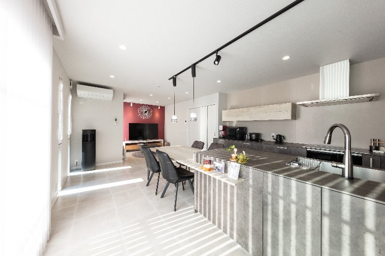 元々親子で暮らしていたトヨタホームの一戸建て住宅を、お嬢様のご結婚を機に2世帯住宅としてリニューアル。1Fはご両親の住まいとして、2Fをお嬢様ご夫婦の住まいとし、新たにシステムキッチンも含めたLDKを備え生まれ変わりました。お打合せ開始からプランの決定まで実に1年半の期間を使い、じっくり納得ゆくまでお話をいたしました。こだわったのは間取り。2世帯リフォームだからと言ってもLDKの空間づくりに妥協はいたしません。ゆったりとくつろげる広さを確保し、システムキッチンをフラット対面にすることで更に部屋全体の広がりを確保することが出来ました。ポイントはリビング正面の壁。モノトーンを基調とした空間の中に映(は)える赤。装飾の時計が遊び心をくすぐります。また、サニタリーもこだわりを。収納をしっかり確保し、部屋干し対策もバッチリ。ご夫婦の生活時間帯が違うため、ランドリーエリアと寝室を離すようプランいたしました。