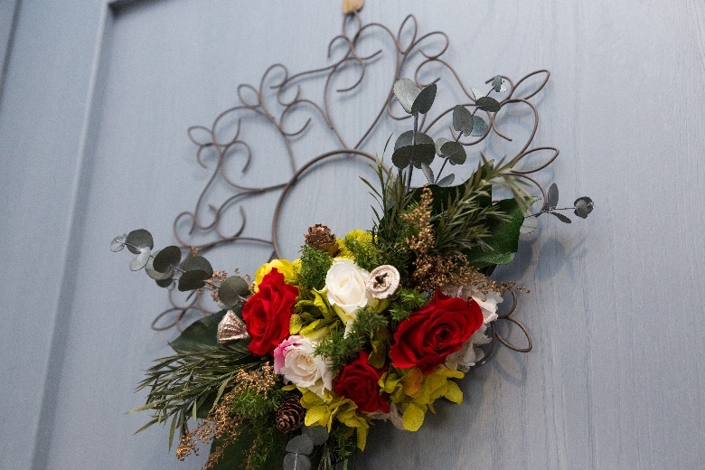 テイストを作るポイントはファブリック。カーテンやクッションなどが担当します。ドアや壁に掛けられたリースなど、インテリア雑貨を置くことでも雰囲気はさらに上がります。きっと北欧ではお花を飾ることで温もりを感じ、春の訪れを待ちわびているのでしょう。