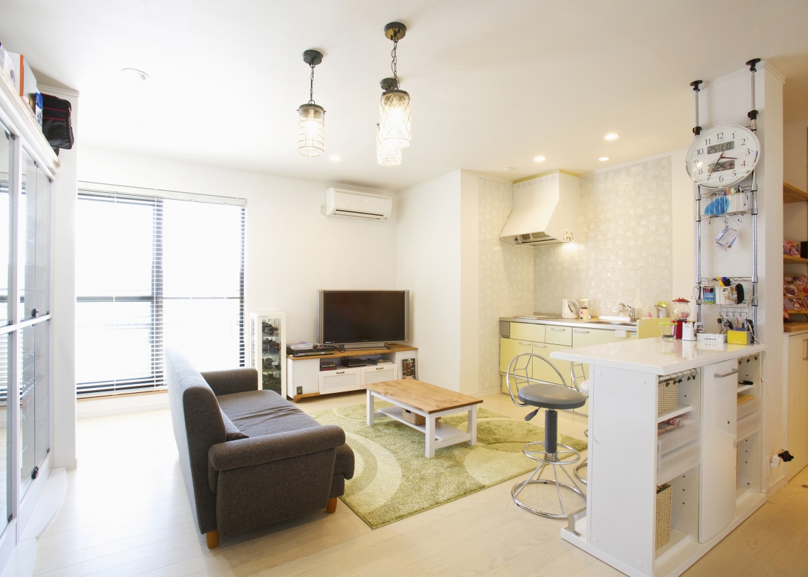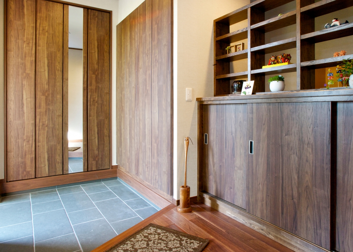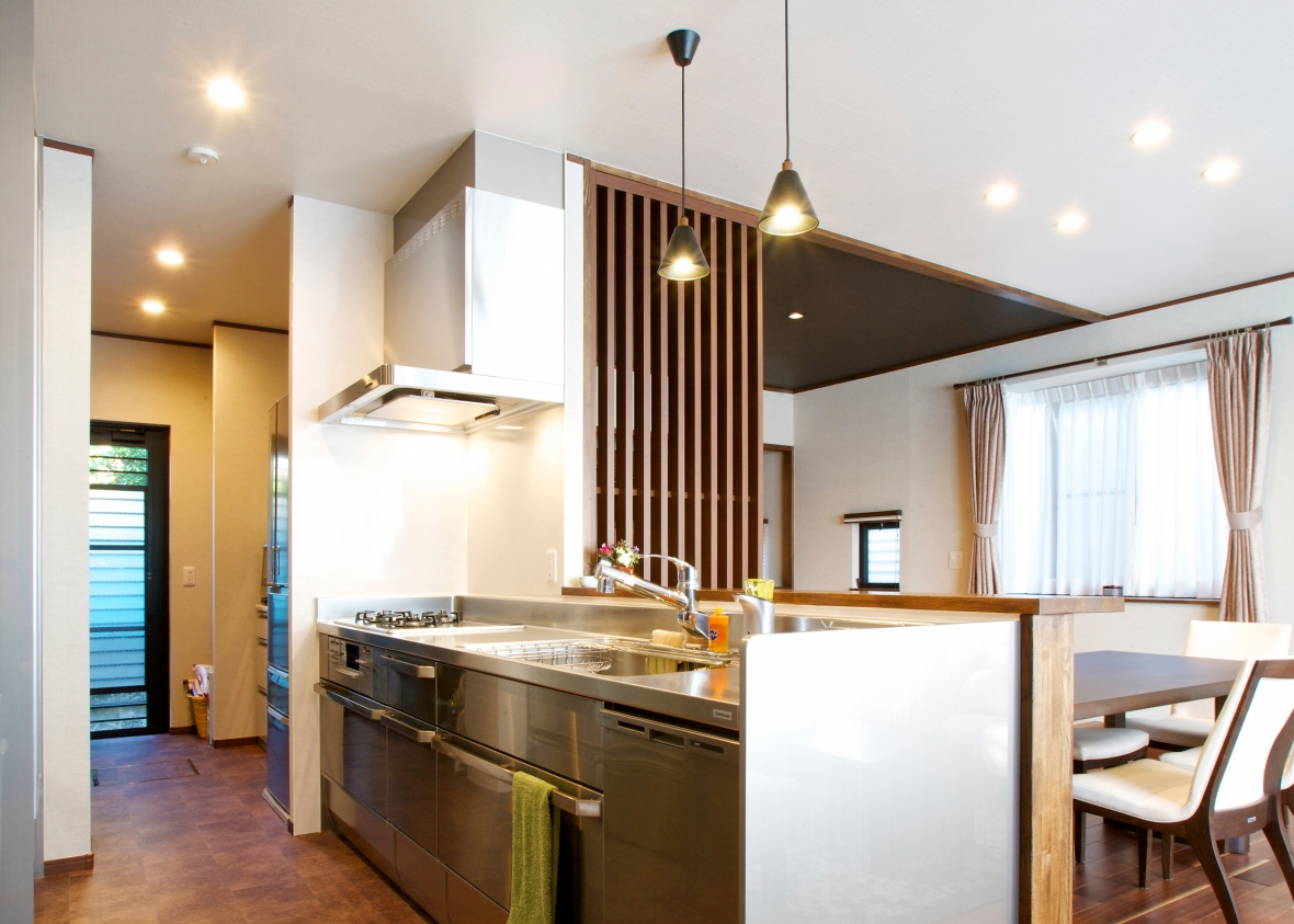 おばあ様、お母様と同居をするために、亡きお父様が建てられたご実家をリフォーム。LDKには和室をしつらえ、キッチンをお部屋の中心に設置しました。階段もLDKに取り込んで、帰宅時はもちろん、団らん・食事もココが起点。4世代3世帯のにぎやかな空間が生まれました。