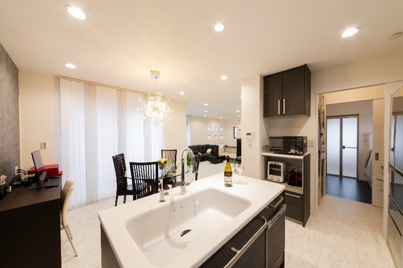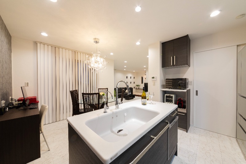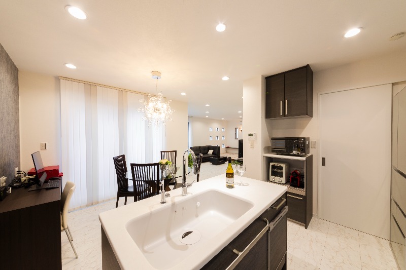 デザイン性を統一することで、シンプルでスタイリッシュな空間になった実例です。