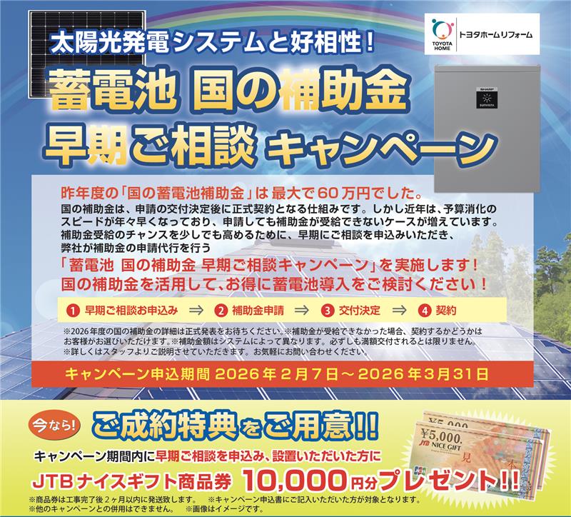 蓄電池 国の補助金 早期ご相談キャンペーン